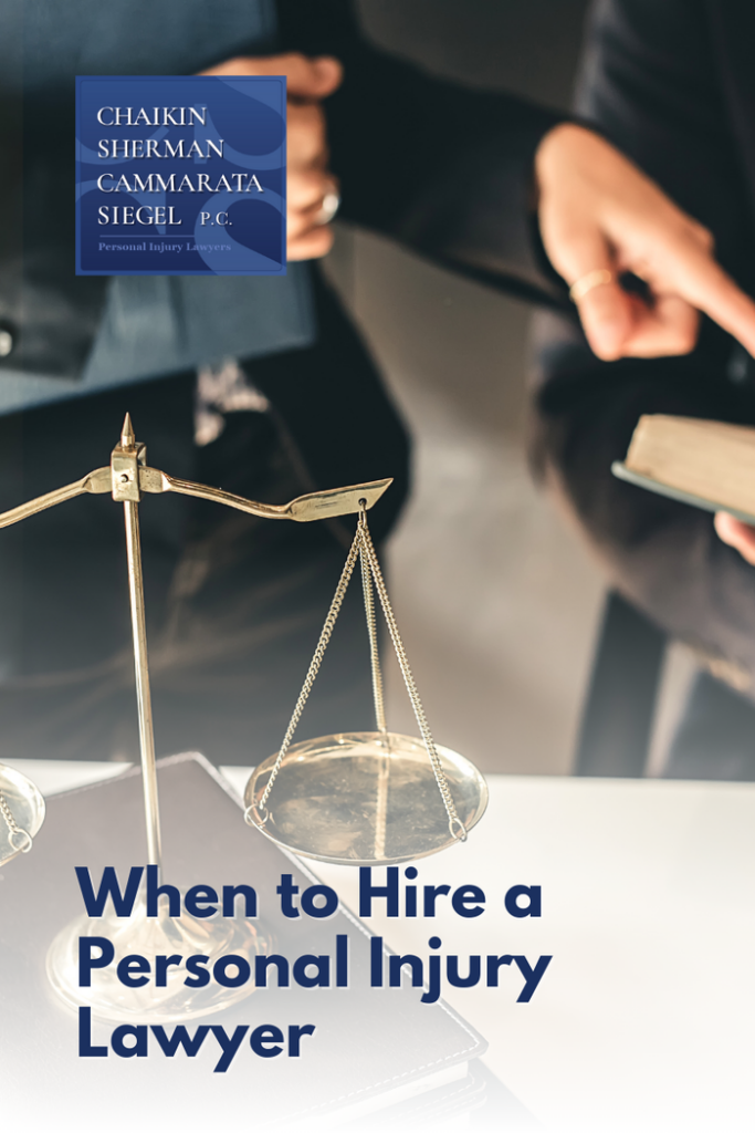 Some personal injury cases are time-sensitive, so it’s important not to wait too long to get started. If you wait too long, you may miss an important deadline that could affect your case. Contact Chaikin, Sherman, Cammarata & Siegel, P.C. today if you have any questions about hiring a personal injury lawyer.